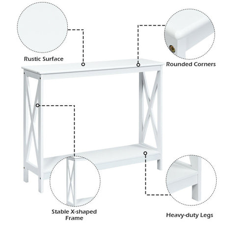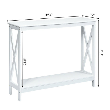 2-Tier Console X-Design Sofa Side Accent Table-White