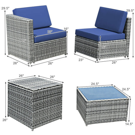5 Pieces Patio Rattan Sectional Furniture Set with Cushions and Coffee Table -Navy