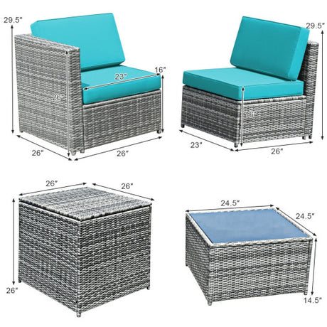 5 Pieces Patio Rattan Furniture Set with Coffee Table-Turquoise