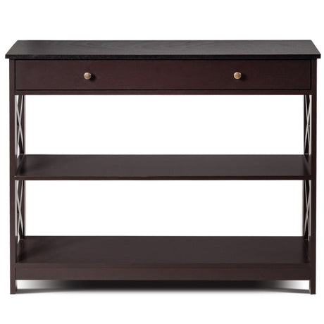 Console Table 3-Tier with Drawer and Storage Shelves-Espresso
