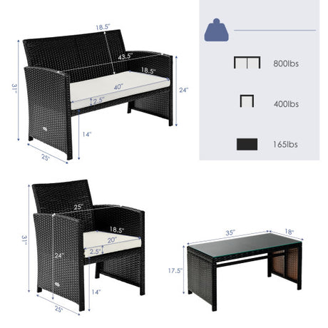 4Pcs Patio Rattan Cushioned Furniture Set-White