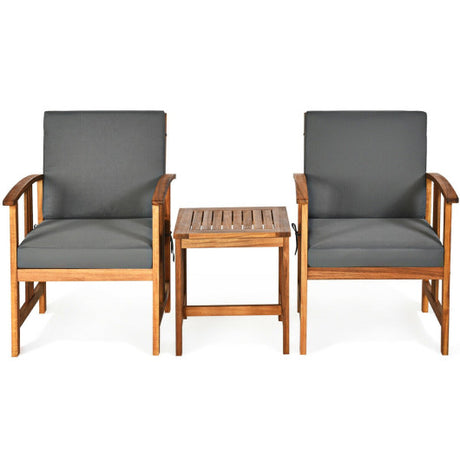 4 Pieces Acacia Wood Outdoor Patio Furniture Set with Cushions-Gray