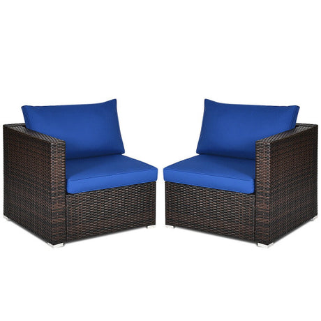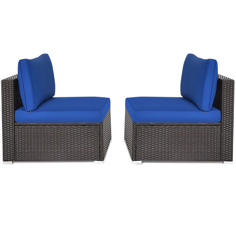 2 Pieces Patio Rattan Armless Sofa Set with 2 Cushions and 2 Pillows-Navy