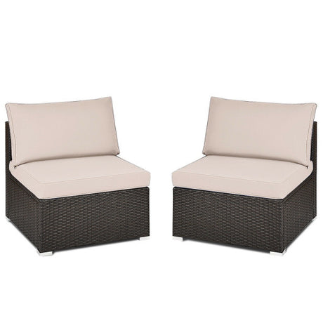 2 Pieces Patio Rattan Armless Sofa Set with 2 Cushions and 2 Pillows-Brown