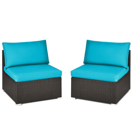 2 Pieces Patio Rattan Armless Sofa Set with 2 Cushions and 2 Pillows-Blue