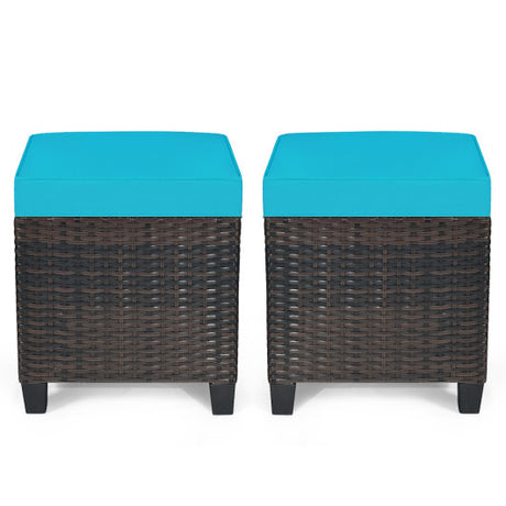2 Pieces Patio Rattan Ottoman Set with Removable Cushions-Turquoise
