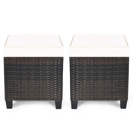 2 Pieces Patio Rattan Ottoman Set with Removable Cushions-White