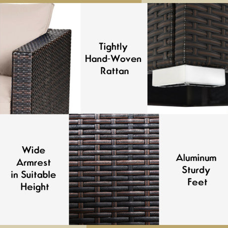 5 Pieces Outdoor Patio Rattan Furniture Set With Cushions-Beige