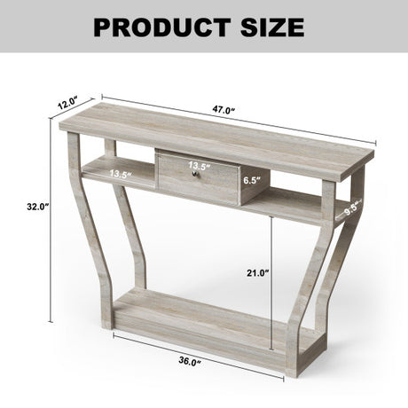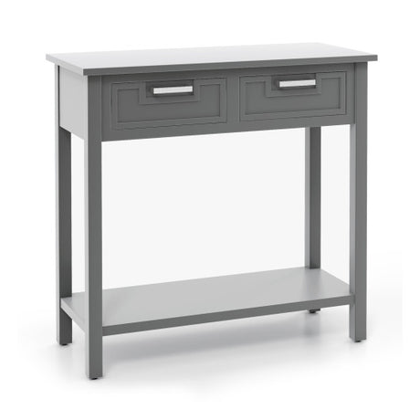 Narrow Console Table with Drawers and Open Storage Shelf-Gray