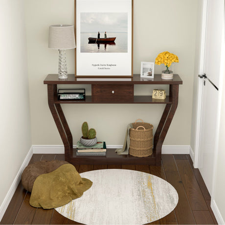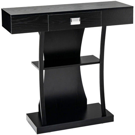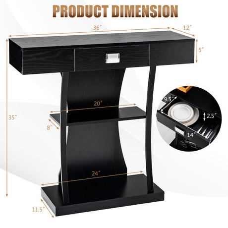 Console Table with Drawer and 2-Tier Shelves for Entryway Living Room-Black