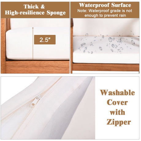 3PC Solid Wood Outdoor Patio Sofa Furniture Set-White