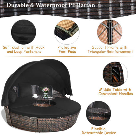 4 Pieces Patio Rattan Cushioned Furniture Set with Loveseat and Table -Brown