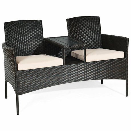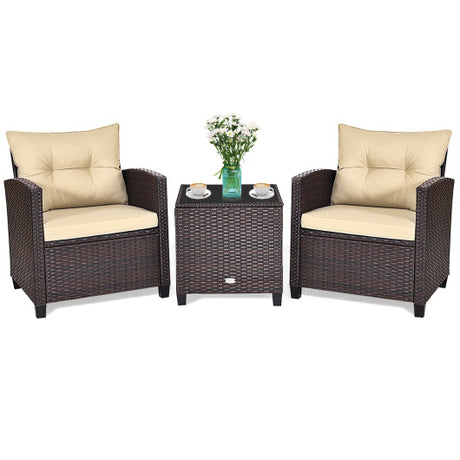 3 Pcs Patio Rattan Furniture Set Cushioned Conversation Set Coffee Table-Beige