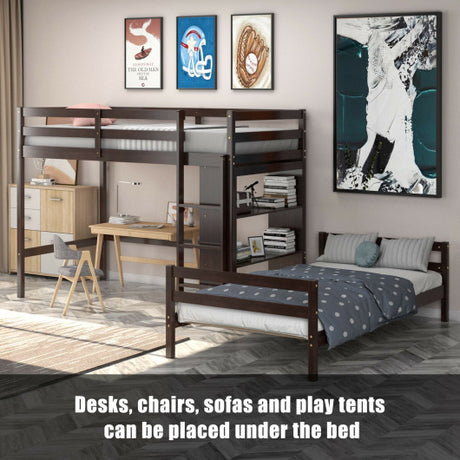 Twin Over Twin Loft Bunk Bed with Bookcase-Dark Brown