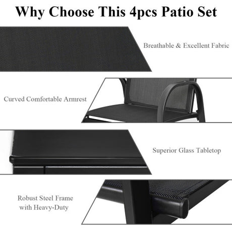 4 Pieces Patio Furniture Set with Glass Top Coffee Table-Black