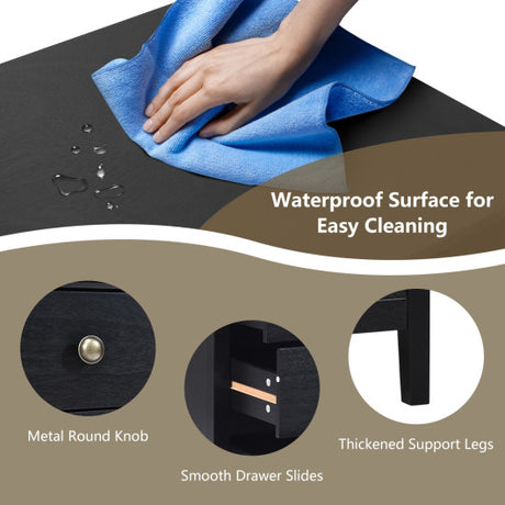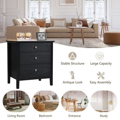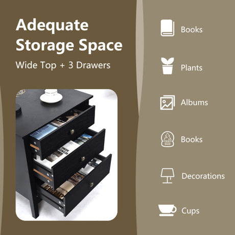 Nightstand Beside End Side Table Organizer with 3 Drawers-Black