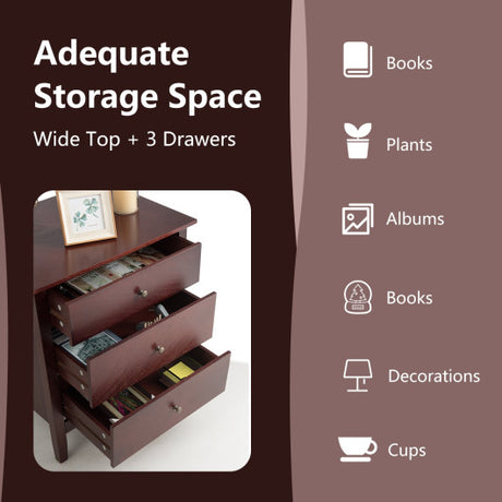 3 Drawers Nightstand Beside End Side Table Accent Table