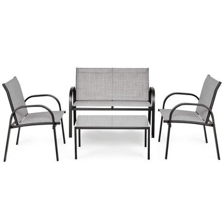 4 Pieces Patio Furniture Set with Glass Top Coffee Table-Gray