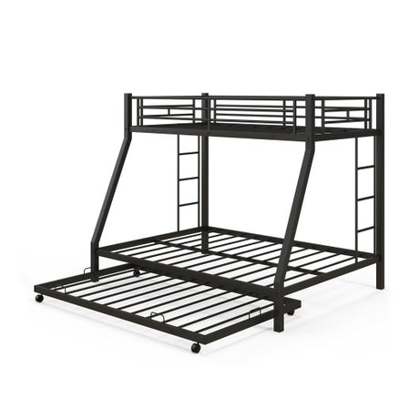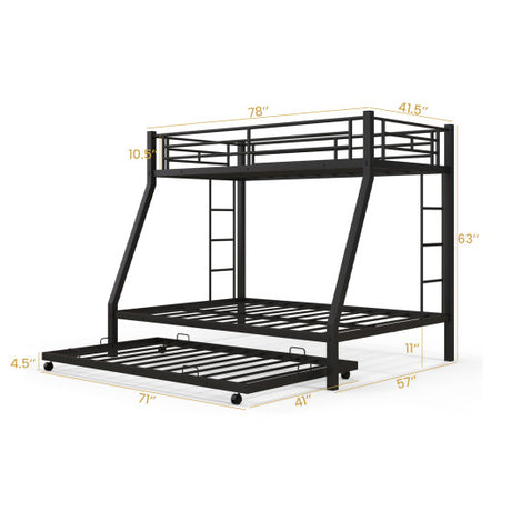 Twin Over Full Bunk Bed Frame with Trundle for Guest Room-Black