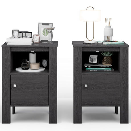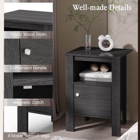 Compact Floor Farmhouse Nightstand with Open Shelf and Cabinet-Dark Gray