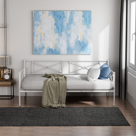 Metal Daybed Twin Bed Frame Stable Steel Slats Sofa Bed-White