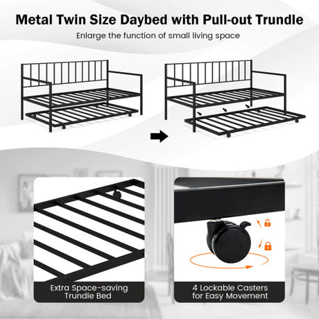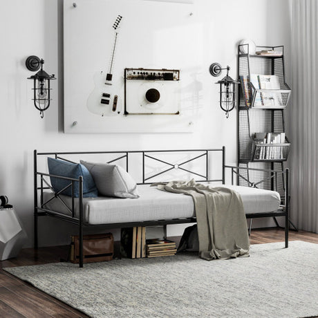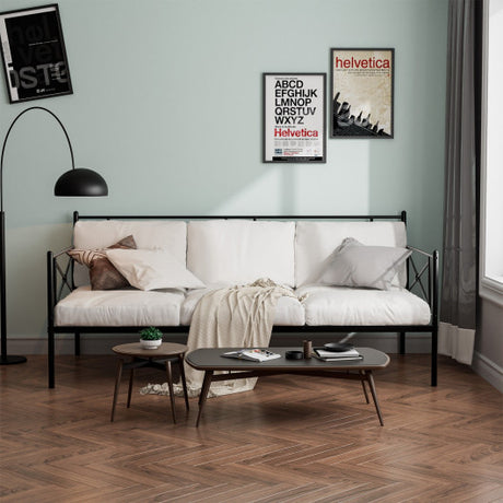Metal Daybed Twin Bed Frame Stable Steel Slats Sofa Bed-Black