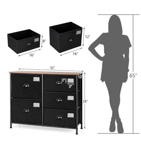 5-Drawer Storage Dresser for Bedroom Closet Entryway-Black