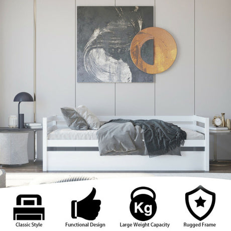 Twin Size Wooden Slats Daybed Bed with Rails-White