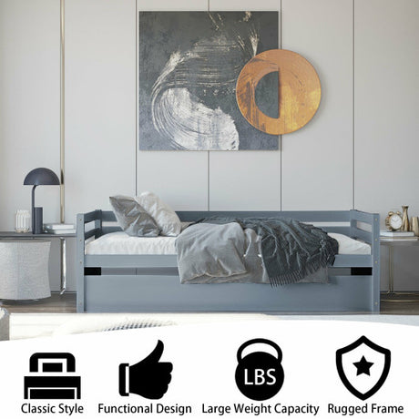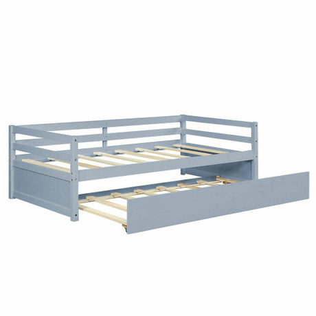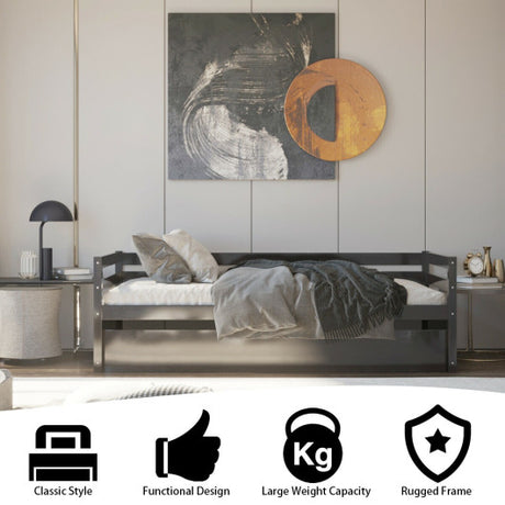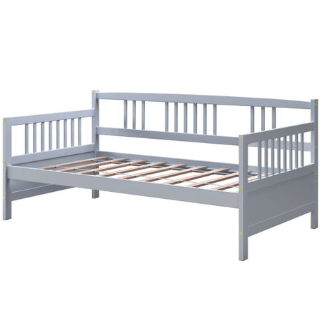 Twin Size Wooden Slats Daybed Bed with Rails-Gray
