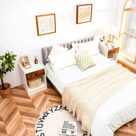 Set of 2 Nightstand with Drawer Cabinet End Side Table Raised Top-Brown