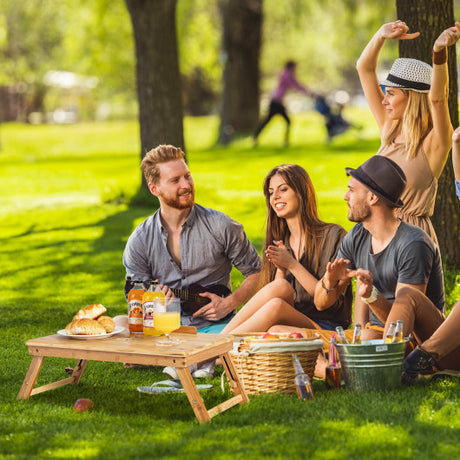 Bamboo Laptop Lap Tray with Adjustable Legs and Tilting Heat-dissipation Top-Natural