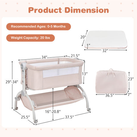 3-in-1 Baby Bassinet with Double-Lock Design and Adjustable Heights-Beige