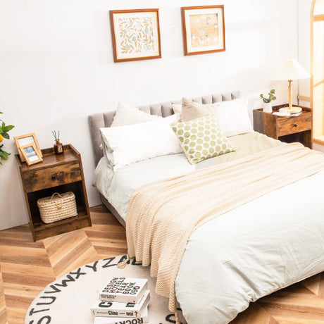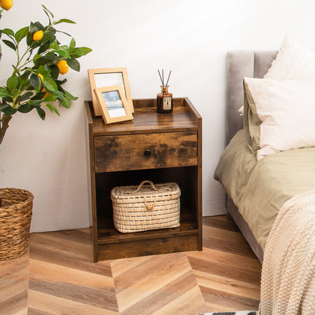 Industrial End Side Table Nightstand with Drawer Shelf-Rustic Brown