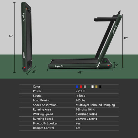 2.25HP 2 in 1 Folding Treadmill with APP Speaker Remote Control-Green