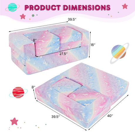 2-in-1 Folding Kids Couch with Blanket Glow in the Dark-Multicolor