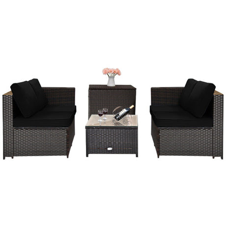 4 Pieces Outdoor Patio Rattan Furniture Set with Loveseat and Storage Box-Black