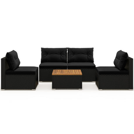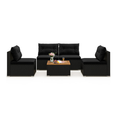 5 Piece Outdoor Furniture Set with Solid Tabletop and Soft Cushions-Black