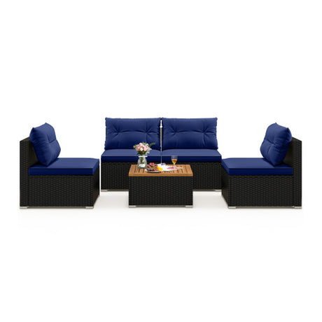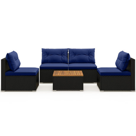 5 Piece Outdoor Furniture Set with Solid Tabletop and Soft Cushions-Navy