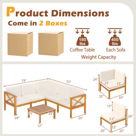 Outdoor 6 Pieces Acacia Wood Patio Sectional Furniture Set-Off White