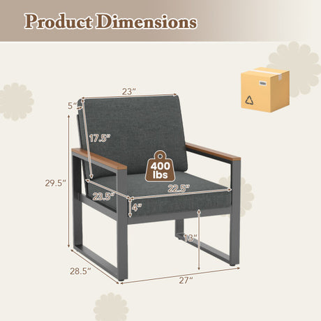 Patio Aluminum Sofa Modern Armchairs Set of 2 for Balcony-Grey