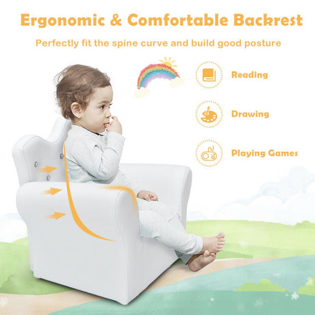 Children Upholstered Princess Sofa with Ottoman and Diamond Decoration for Boys and Girls-White