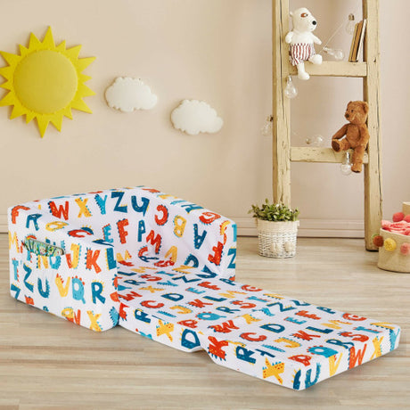 2-in-1 Convertible Kids Sofa with Velvet Fabric-Multicolor