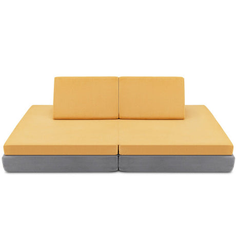 4 Pieces Convertible Kids Couch Set with 2 Folding Mats-Yellow