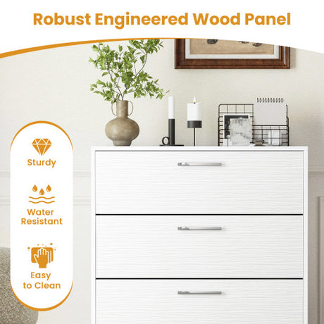 3 Drawer Mid Century Modern Chest of Drawers with Reeded Tempered Glass Front-Natural