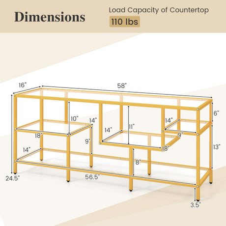 58 Inch TV Console Table with Tempered Glass Shelves for Living Room-Gold