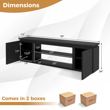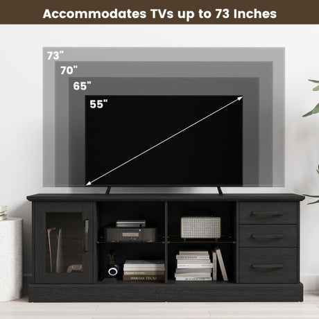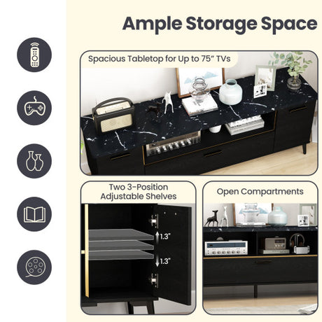 TV Cabinet with 3 Adjustable Shelves and Anti-Tipping Kits for TVs up to 80 Inch-Black