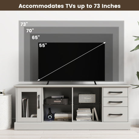 TV Cabinet with 3 Adjustable Shelves and Anti-Tipping Kits for TVs up to 80 Inch-White
