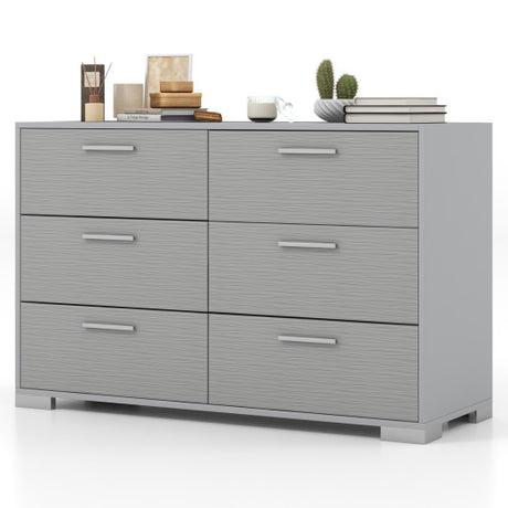 6 Drawer Storage Cabinet with Metal Legs Handles with Anti-Toppling Devices-Grey