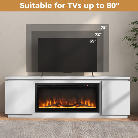 Fireplace TV Stand for TVs up to 80 Inch with 3 Adjustable Shelves-White
