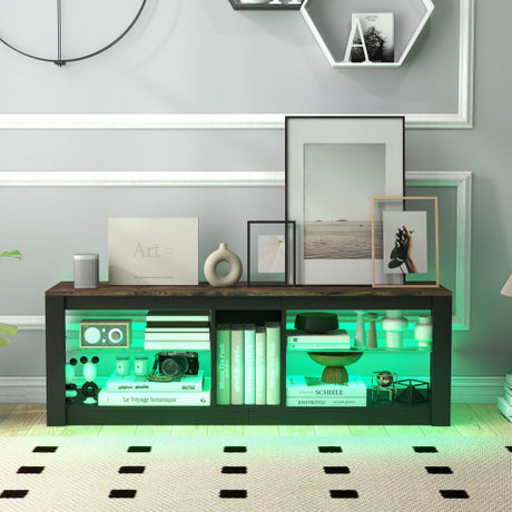 58 Inches TV stand for TVs up to 65 Inches with 20 Color Led Lights-Coffee